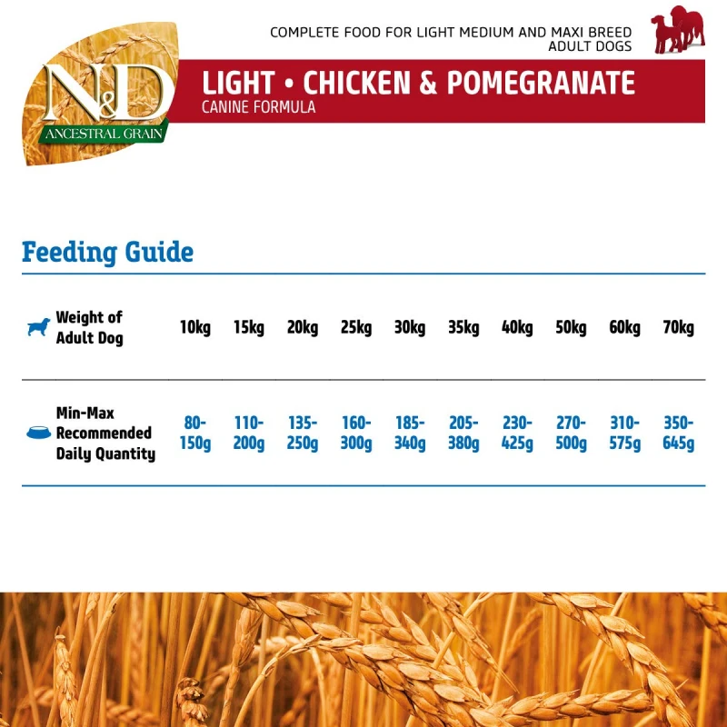 - Τα προϊόντα N&D Ancestral Grain είναι καλά ενσωματωμένα με φρούτα και λαχανικά, όπως το ρόδι που έχει αντιοξειδωτικές ιδιότητες και είναι φυσική πηγή βιταμινών (βιταμίνη C), καλίου και φωσφόρου.